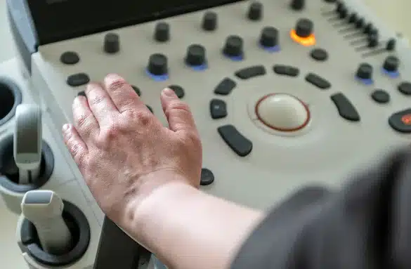 During the scan, the veterinarian will move a special gel over the shaved area and use a transducer to capture images.